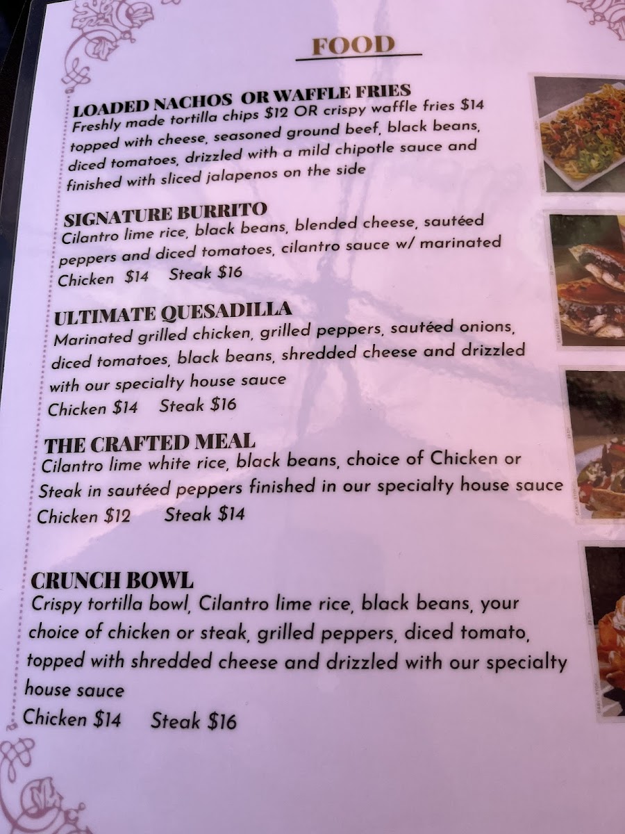 Loaded with buffalo chicken tenders, crispy bacon, blended cheese, waffle fries, black beans, chipotle sauce, jalapenos, and tomatoes